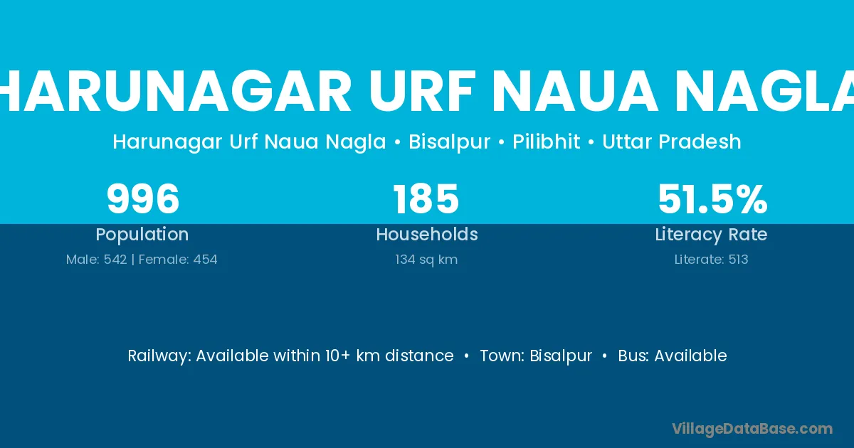 Harunagar Urf Naua Nagla village has a total population of 996 people, of which 542 are males and 454 are females.