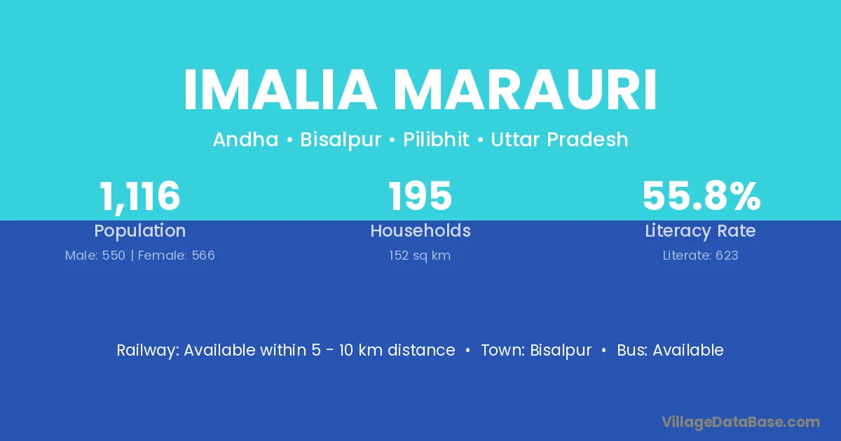 Imalia Marauri village has a total population of 1,116 people, of which 550 are males and 566 are females.
