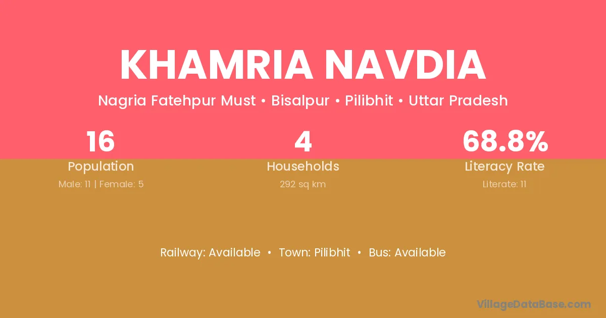 Pilibhit is the nearest town to Khamria Navdia village for major economic activities
