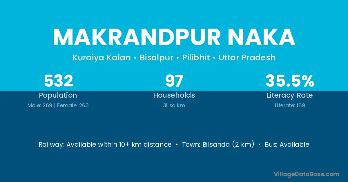 Makrandpur Naka village has a total population of 532 people, of which 269 are males and 263 are females.