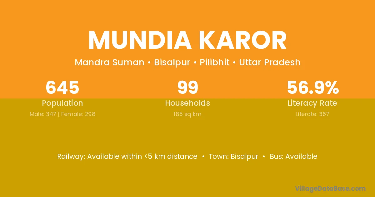 Mundia Karor village has a total population of 645 people, of which 347 are males and 298 are females.