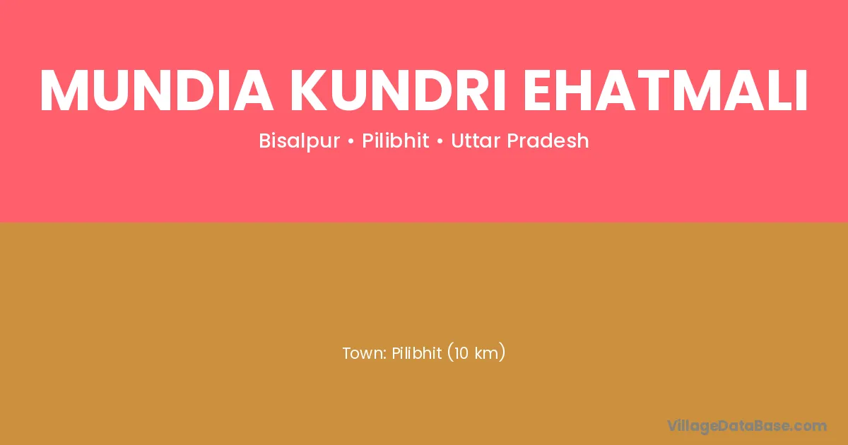 Pilibhit (10 km) is the nearest town to Mundia Kundri Ehatmali village for major economic activities and is located approximately 10 km away.