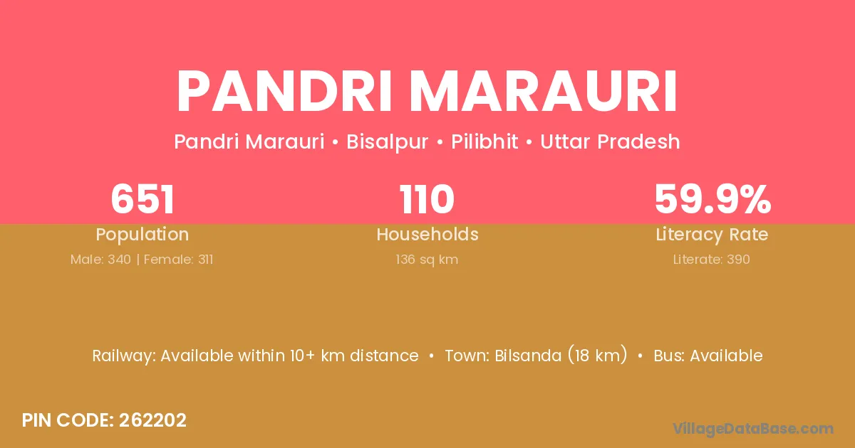 Bilsanda (18 km) is the nearest town to Pandri Marauri village for major economic activities and is located approximately 18 km away.