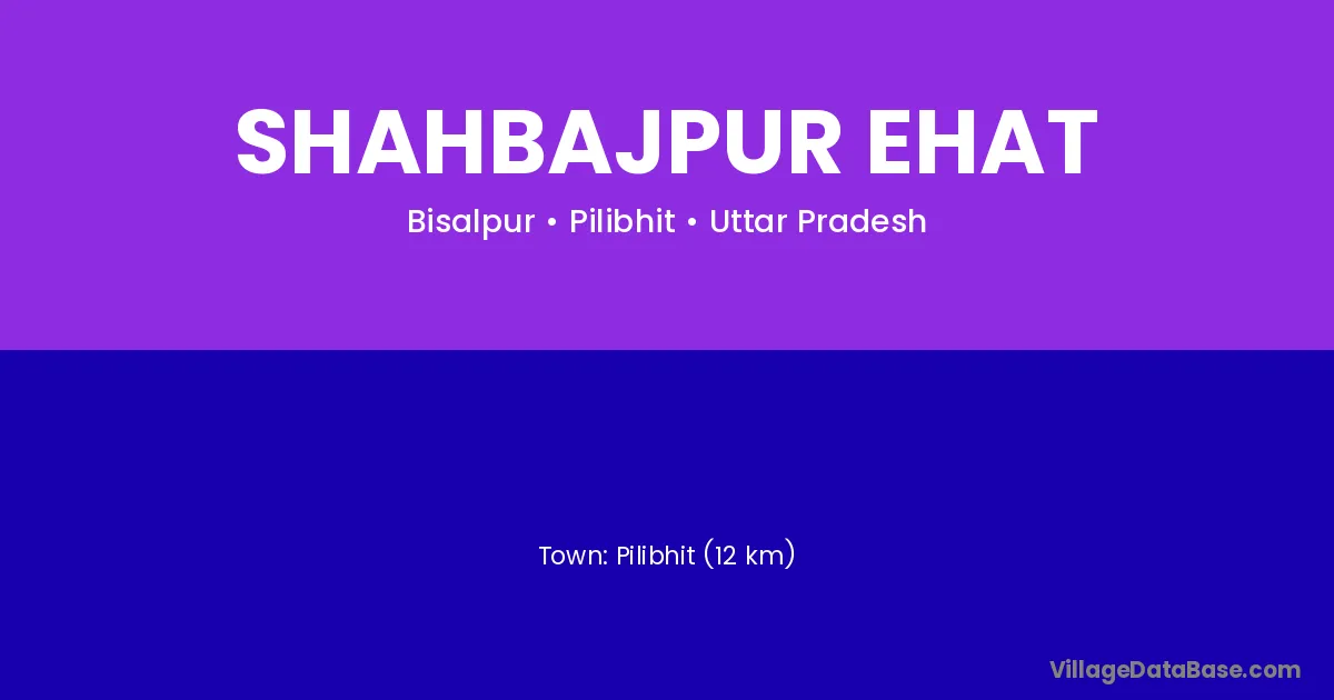Pilibhit (12 km) is the nearest town to Shahbajpur Ehat village for major economic activities and is located approximately 12 km away.
