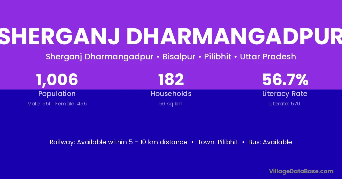 Pilibhit is the nearest town to Sherganj Dharmangadpur village for major economic activities