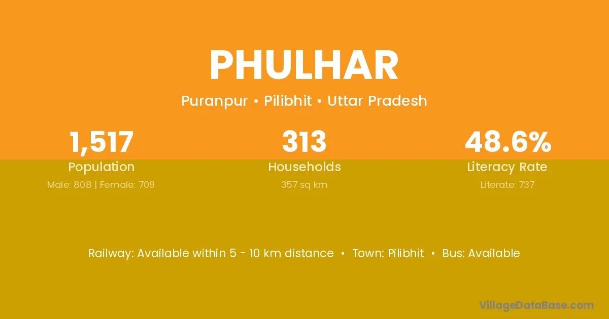 Phulhar village is located in the Pilibhit Tehsil of the Pilibhit district in Uttar Pradesh .