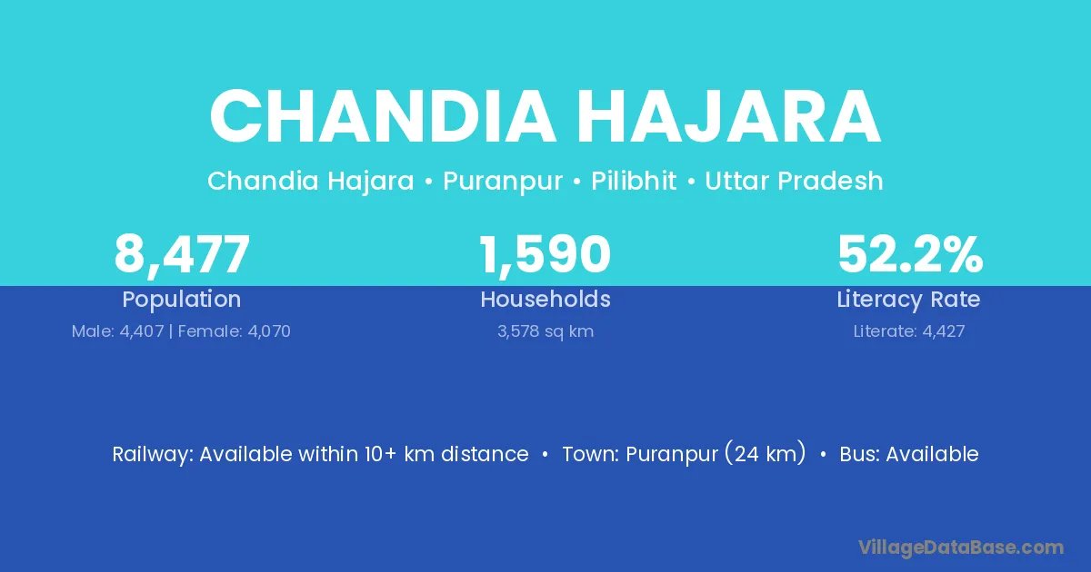 Chandia Hajara village has a total population of 8,477 people, of which 4,407 are males and 4,070 are females.