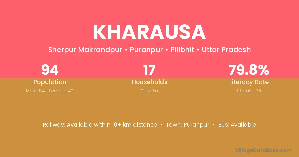 Kharausa village is located in the Puranpur Tehsil of the Pilibhit district in Uttar Pradesh .
