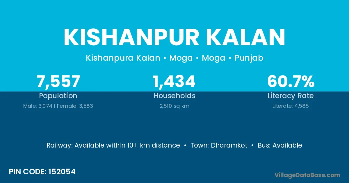 The literacy rate of Kishanpur Kalan village is 60.98%. Male literacy stands at 72.22% and female literacy at 52.17%.