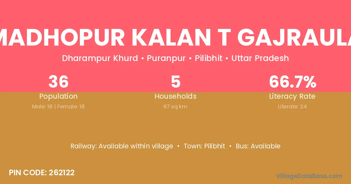 Pilibhit is the nearest town to Madhopur Kalan T Gajraula village for major economic activities