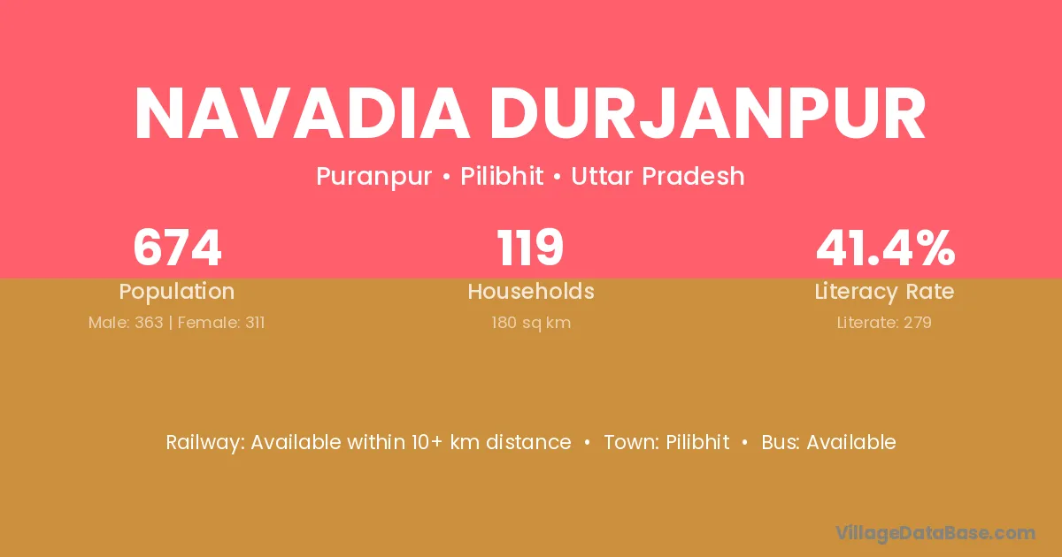 Pilibhit is the nearest town to Navadia Durjanpur village for major economic activities