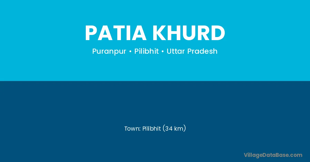Pilibhit (34 km) is the nearest town to Patia Khurd village for major economic activities and is located approximately 34 km away.