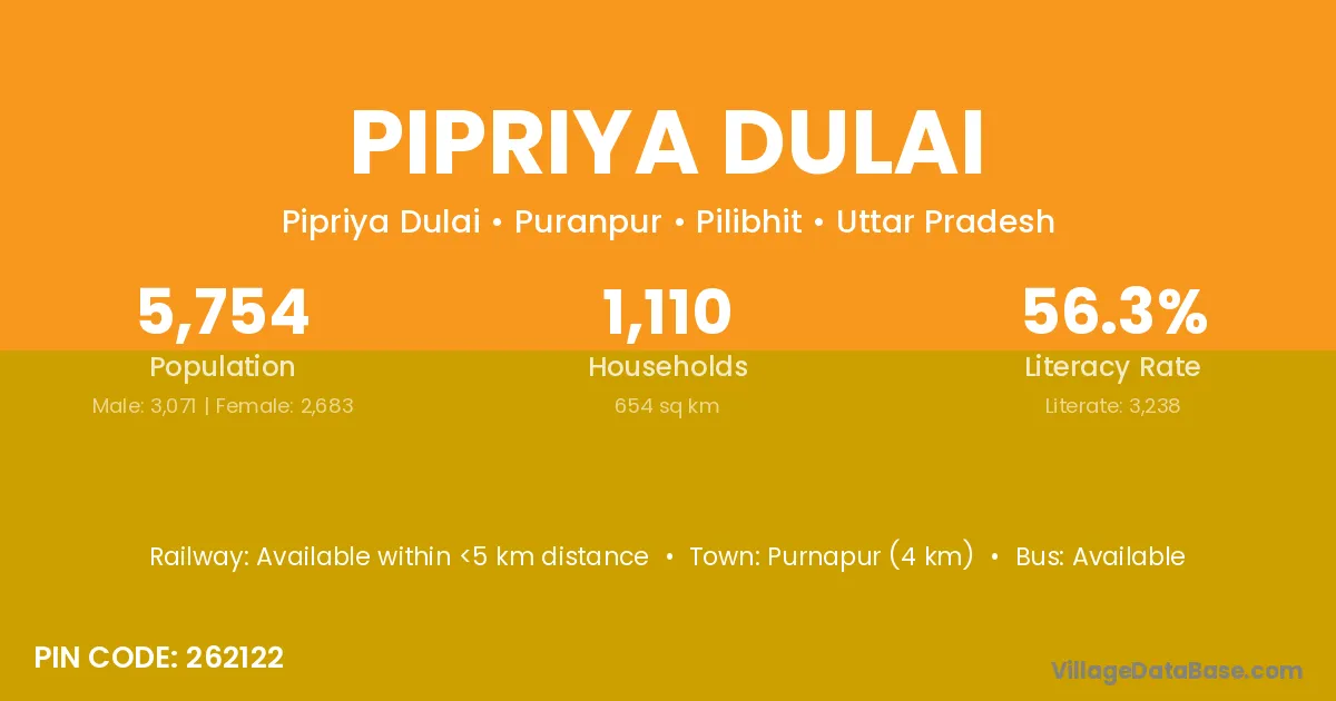 Purnapur (4 km) is the nearest town to Pipriya Dulai village for major economic activities and is located approximately 4 km away.