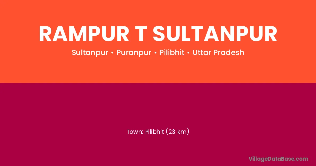 Pilibhit (23 km) is the nearest town to Rampur T Sultanpur village for major economic activities and is located approximately 23 km away.