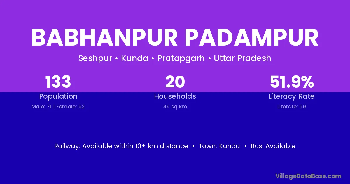 Babhanpur Padampur village has a total population of 133 people, of which 71 are males and 62 are females.