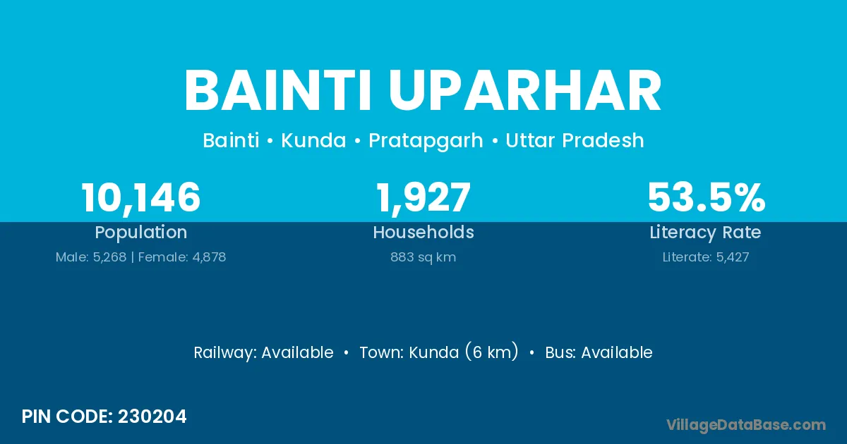 Kunda (6 km) is the nearest town to Bainti Uparhar village for major economic activities and is located approximately 6 km away.