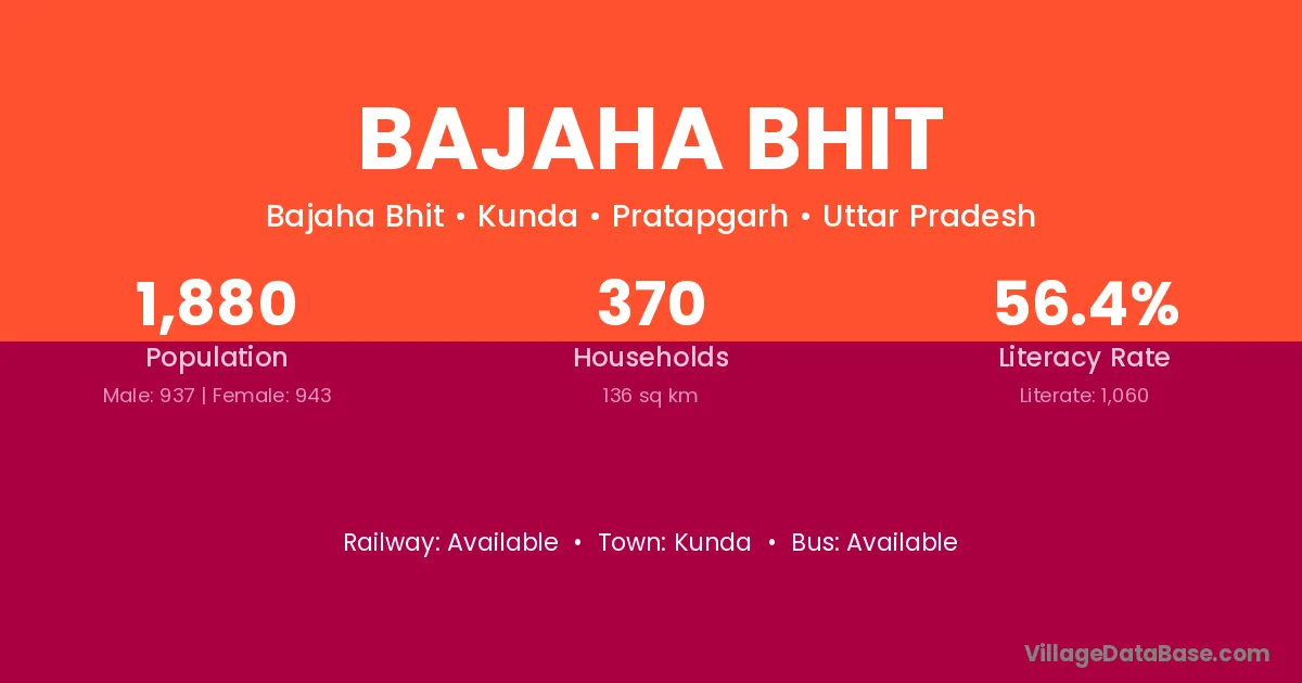 Bajaha Bhit village has a total population of 1,880 people, of which 937 are males and 943 are females.