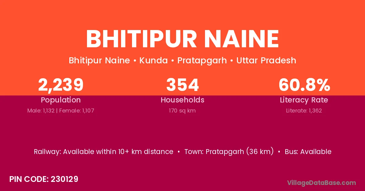 Pratapgarh (36 km) is the nearest town to Bhitipur Naine village for major economic activities and is located approximately 36 km away.