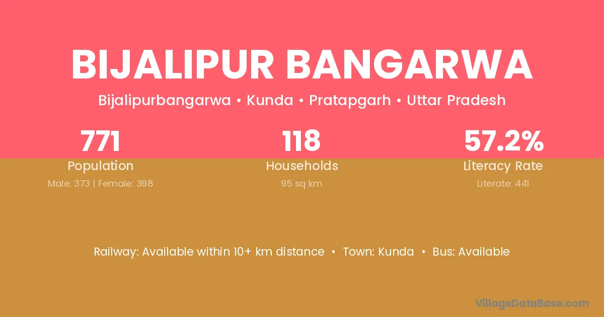Bijalipur Bangarwa village has a total population of 771 people, of which 373 are males and 398 are females.