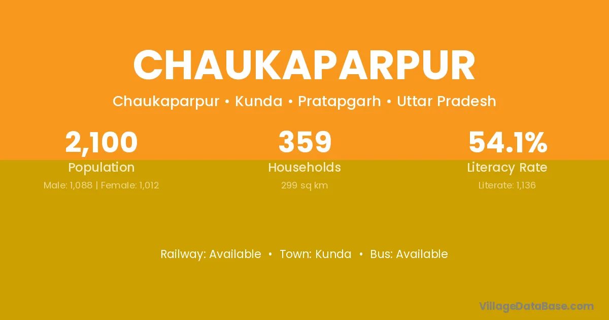 Chaukaparpur village has a total population of 2,100 people, of which 1,088 are males and 1,012 are females.