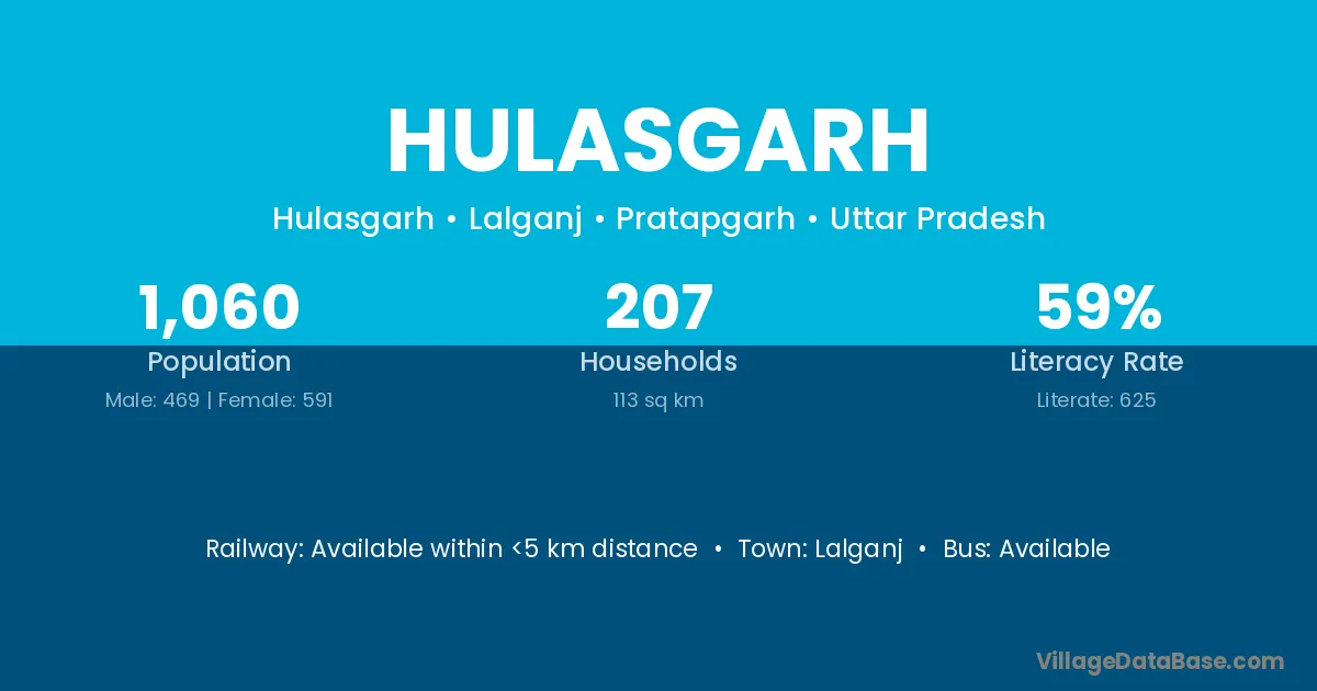 Hulasgarh village has a total population of 616 people, of which 309 are males and 307 are females.
