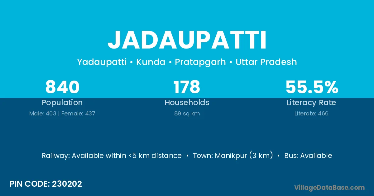 Manikpur (3 km) is the nearest town to Jadaupatti village for major economic activities and is located approximately 3 km away.
