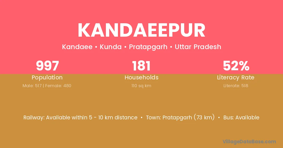 Pratapgarh (73 km) is the nearest town to Kandaeepur village for major economic activities and is located approximately 73 km away.