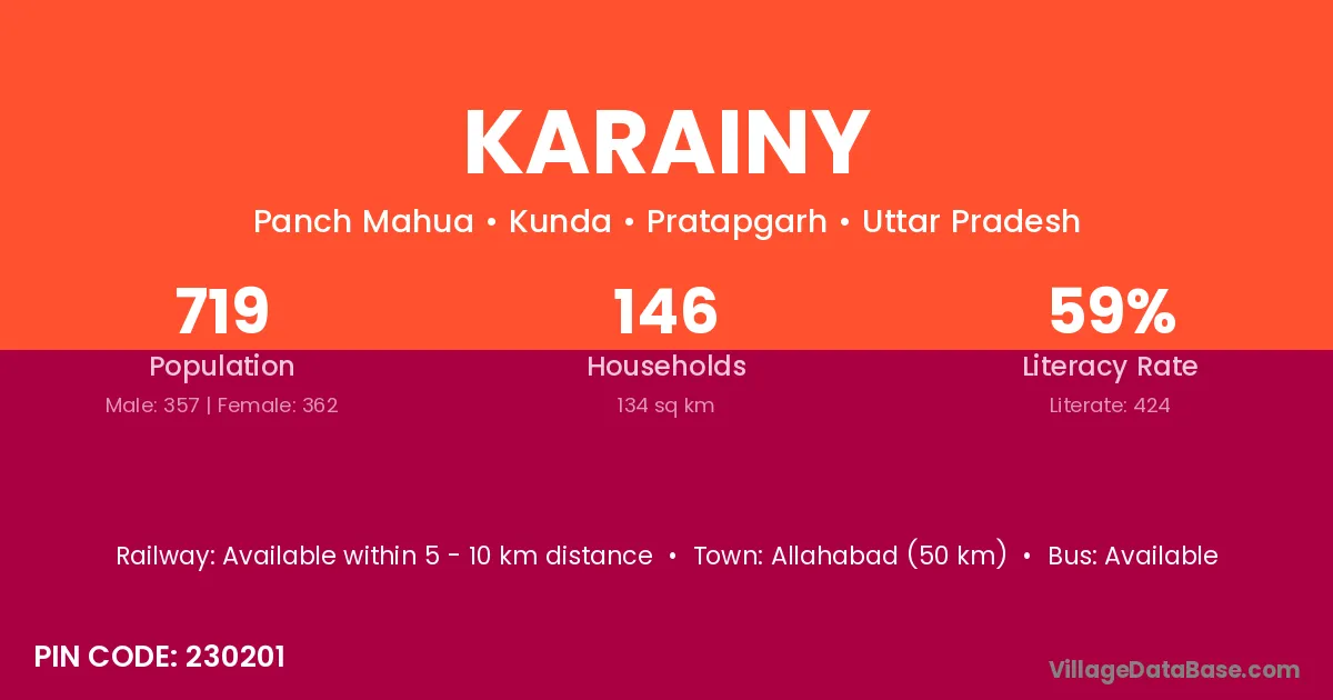 Allahabad (50 km) is the nearest town to Karainy village for major economic activities and is located approximately 50 km away.