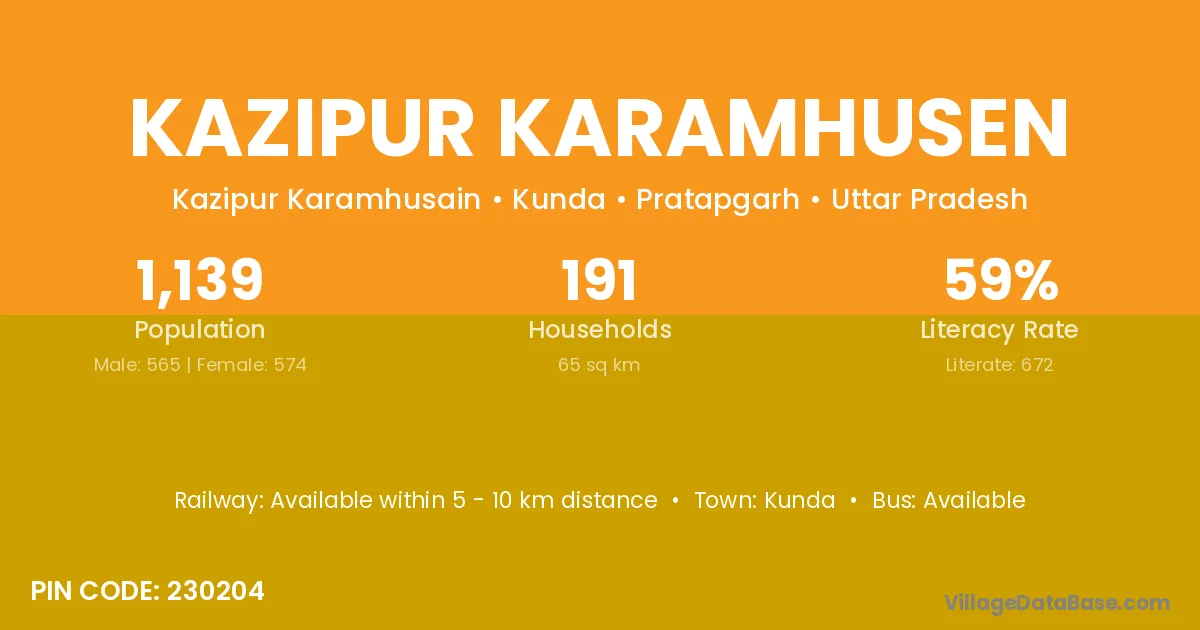 Kazipur Karamhusen village has a total population of 1,139 people, of which 565 are males and 574 are females.