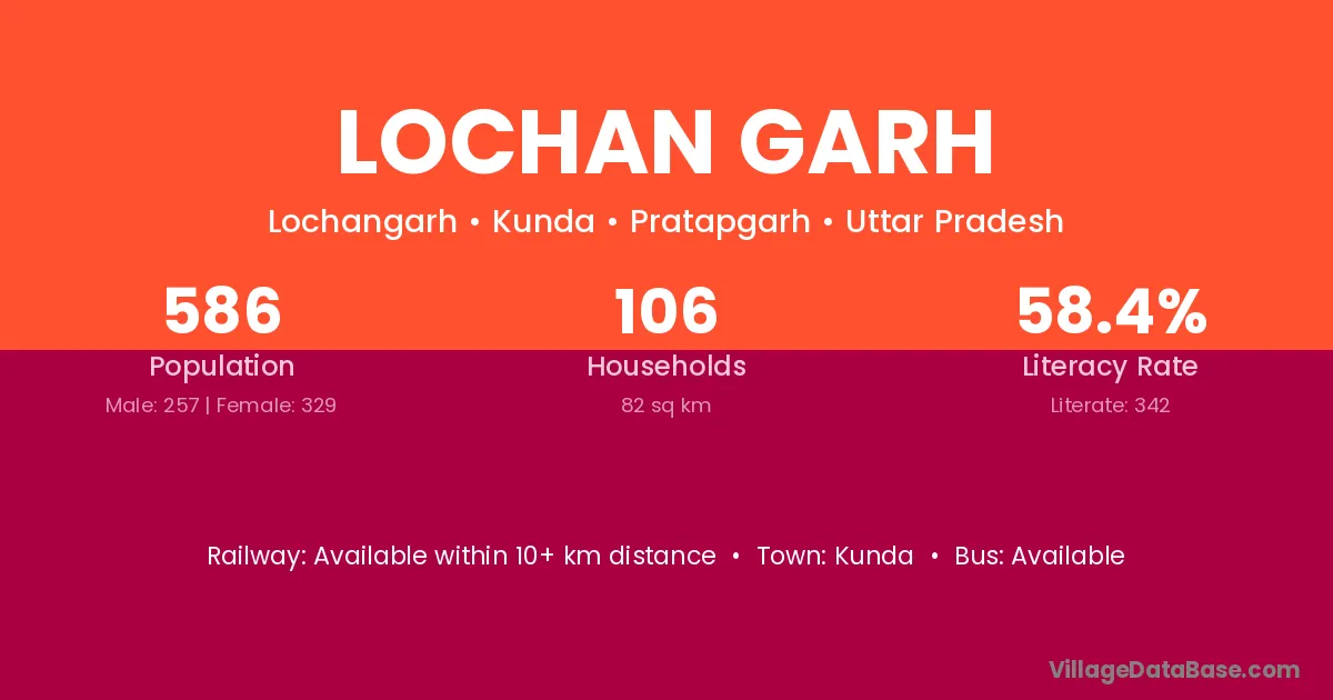 Lochan Garh village has a total population of 586 people, of which 257 are males and 329 are females.