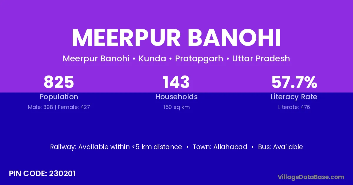 Allahabad is the nearest town to Meerpur Banohi village for major economic activities