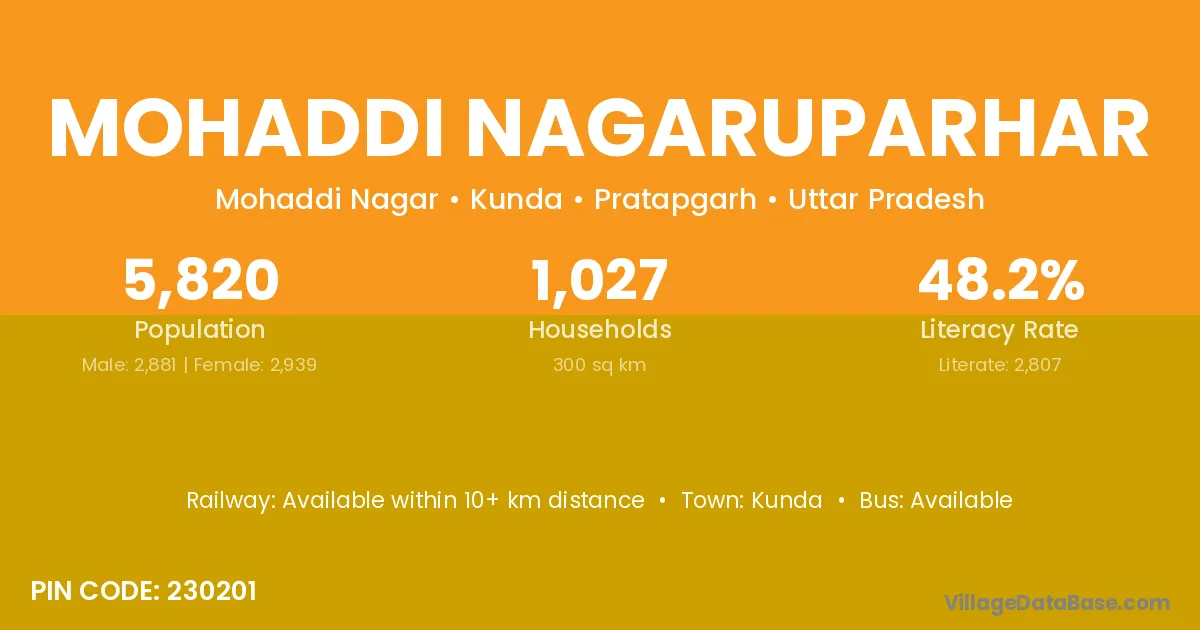 Mohaddi Nagaruparhar village has a total population of 5,820 people, of which 2,881 are males and 2,939 are females.