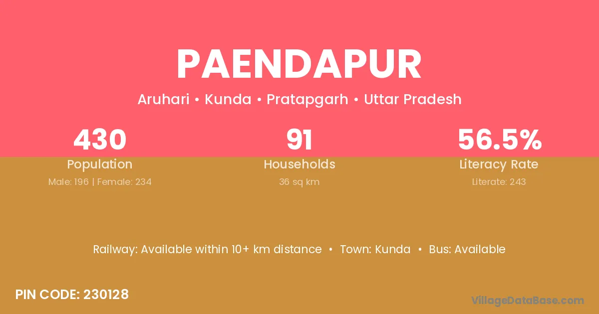 Paendapur village has a total population of 430 people, of which 196 are males and 234 are females.