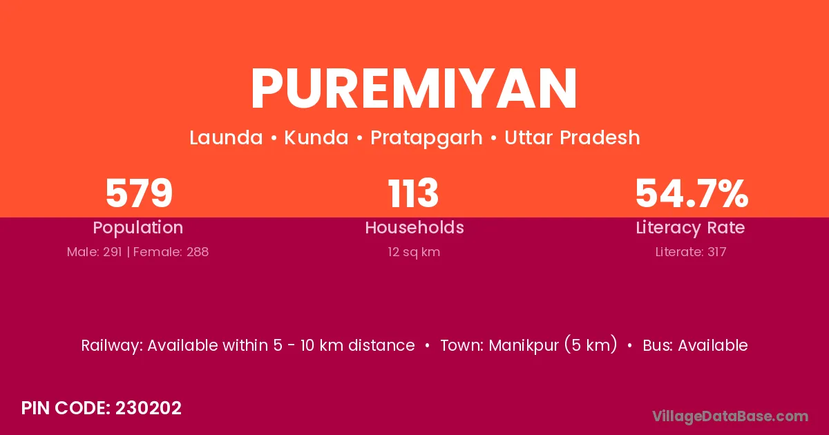 Manikpur (5 km) is the nearest town to Puremiyan village for major economic activities and is located approximately 5 km away.
