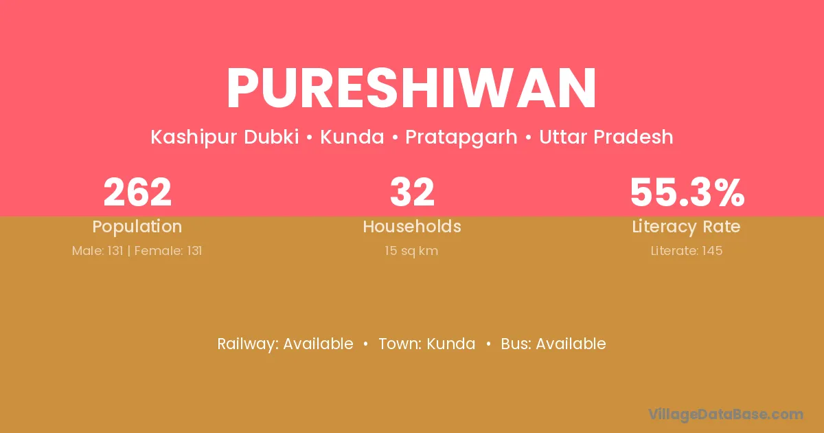 Pureshiwan village has a total population of 262 people, of which 131 are males and 131 are females.