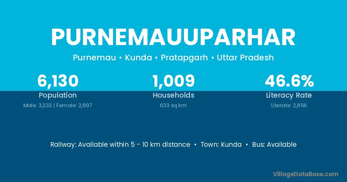 Purnemauuparhar village has a total population of 6,130 people, of which 3,233 are males and 2,897 are females.