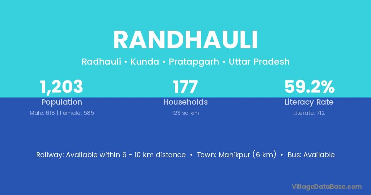 Randhauli village has a total population of 1,203 people, of which 618 are males and 585 are females.