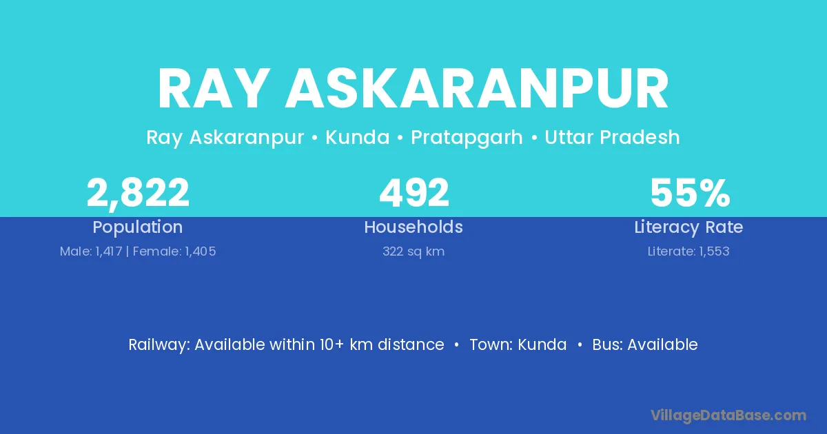 Ray Askaranpur village has a total population of 2,822 people, of which 1,417 are males and 1,405 are females.