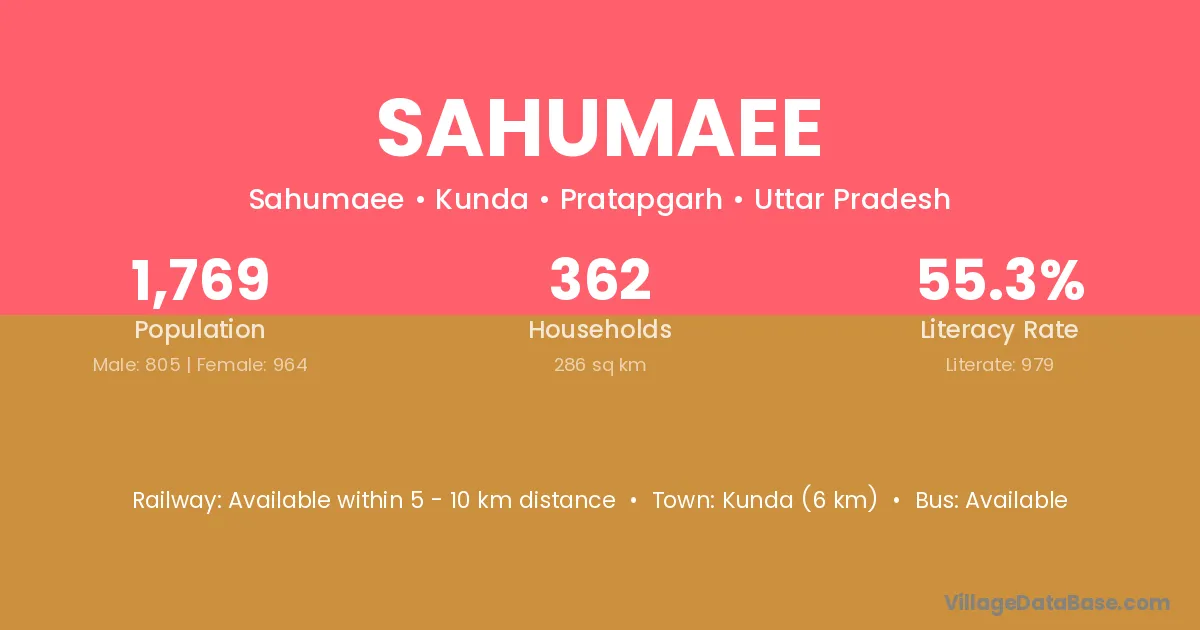 Sahumaee village has a total population of 1,769 people, of which 805 are males and 964 are females.