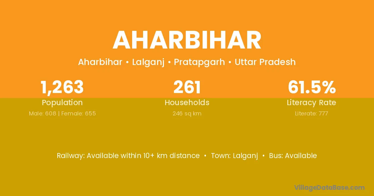 Aharbihar village has a total population of 1,263 people, of which 608 are males and 655 are females.