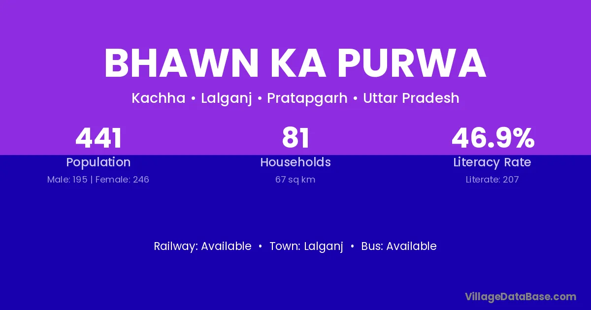 Bhawn Ka Purwa village has a total population of 441 people, of which 195 are males and 246 are females.