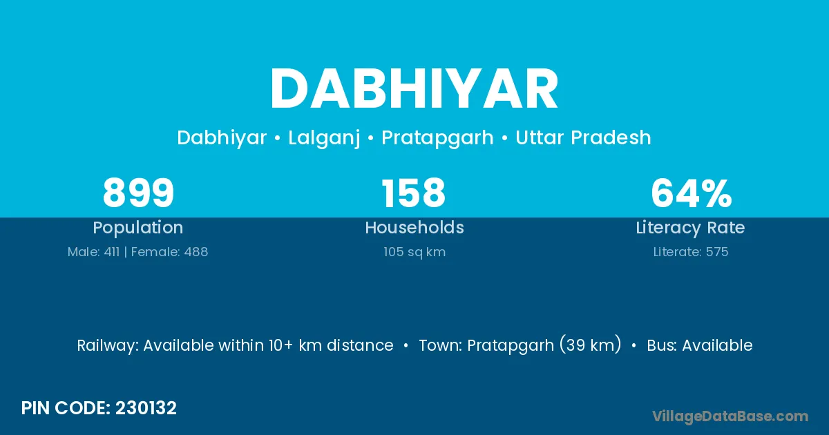 Pratapgarh (39 km) is the nearest town to Dabhiyar village for major economic activities and is located approximately 39 km away.