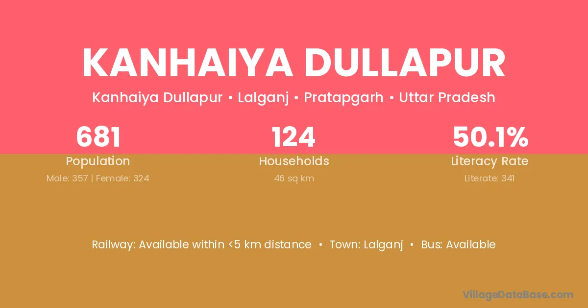 Kanhaiya Dullapur village has a total population of 681 people, of which 357 are males and 324 are females.
