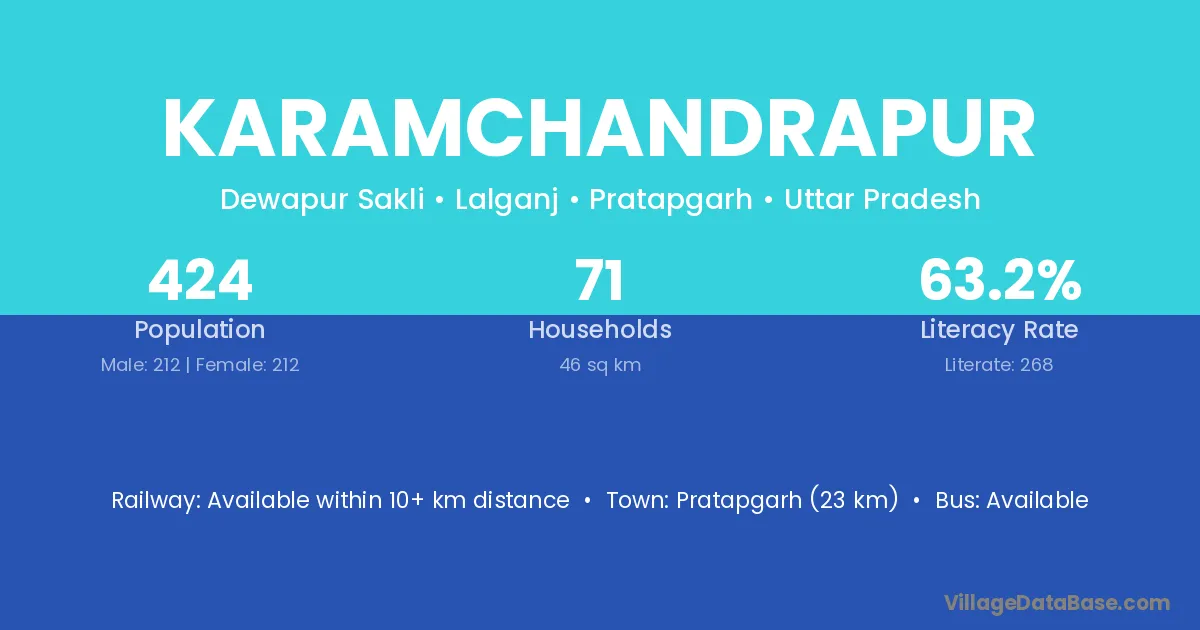 Karamchandrapur village has a total population of 424 people, of which 212 are males and 212 are females.
