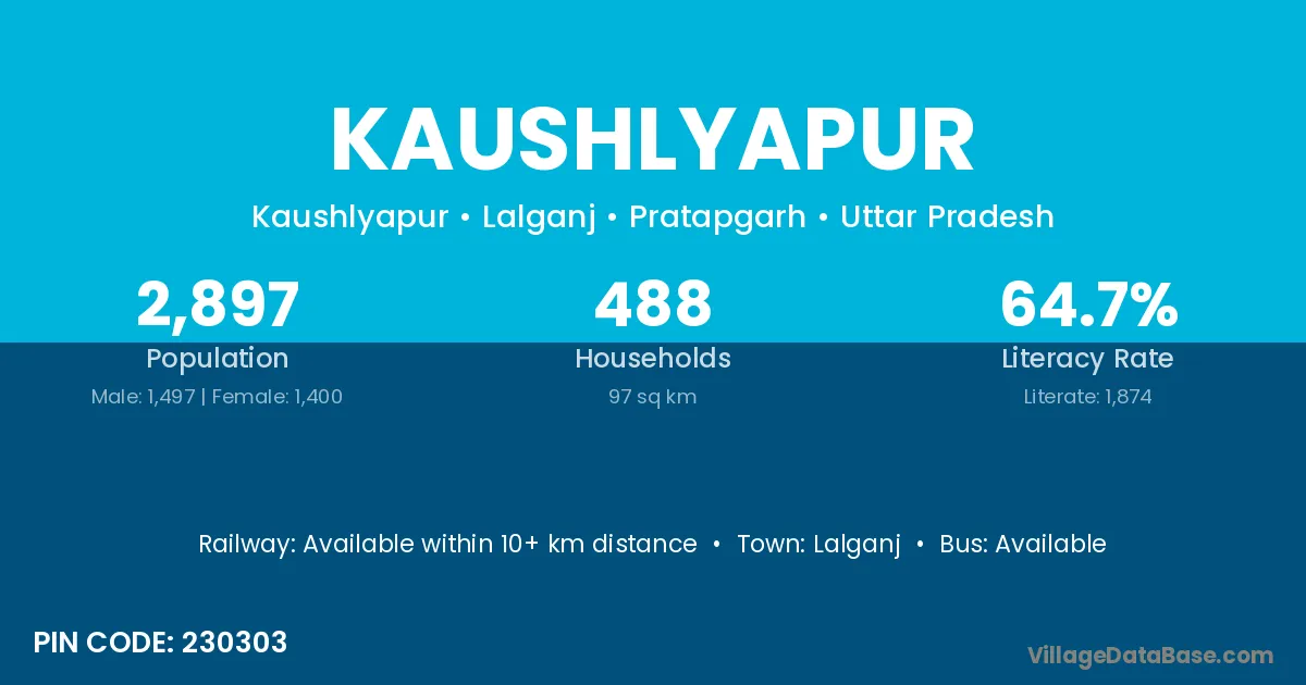 Kaushlyapur village has a total population of 2,897 people, of which 1,497 are males and 1,400 are females.