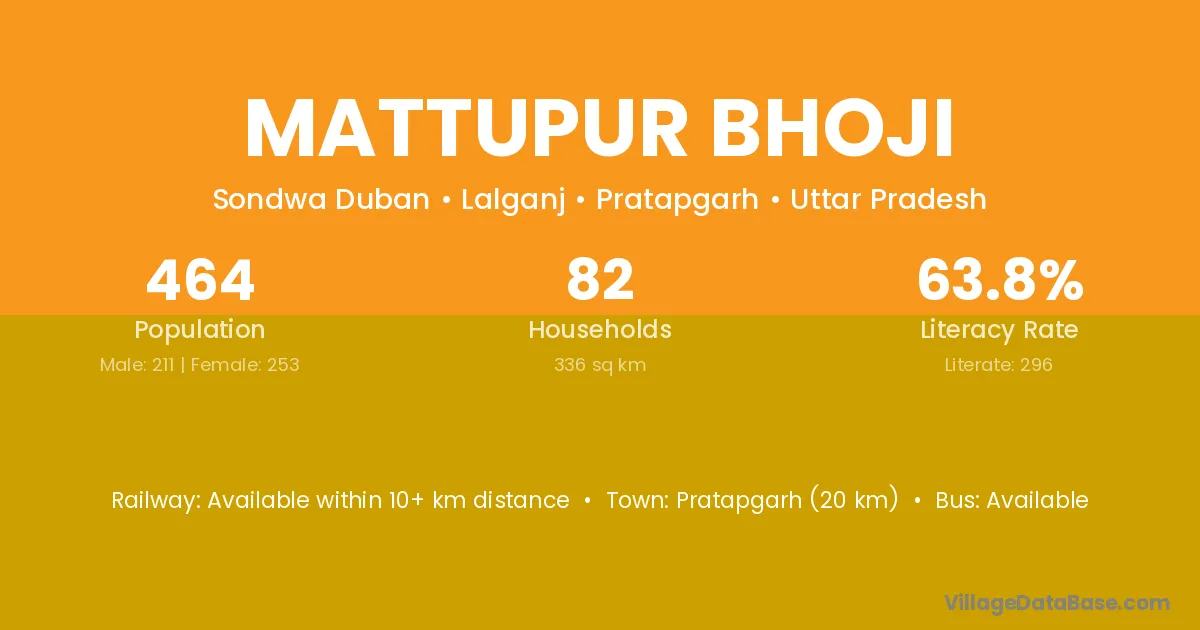 Pratapgarh (20 km) is the nearest town to Mattupur Bhoji village for major economic activities and is located approximately 20 km away.