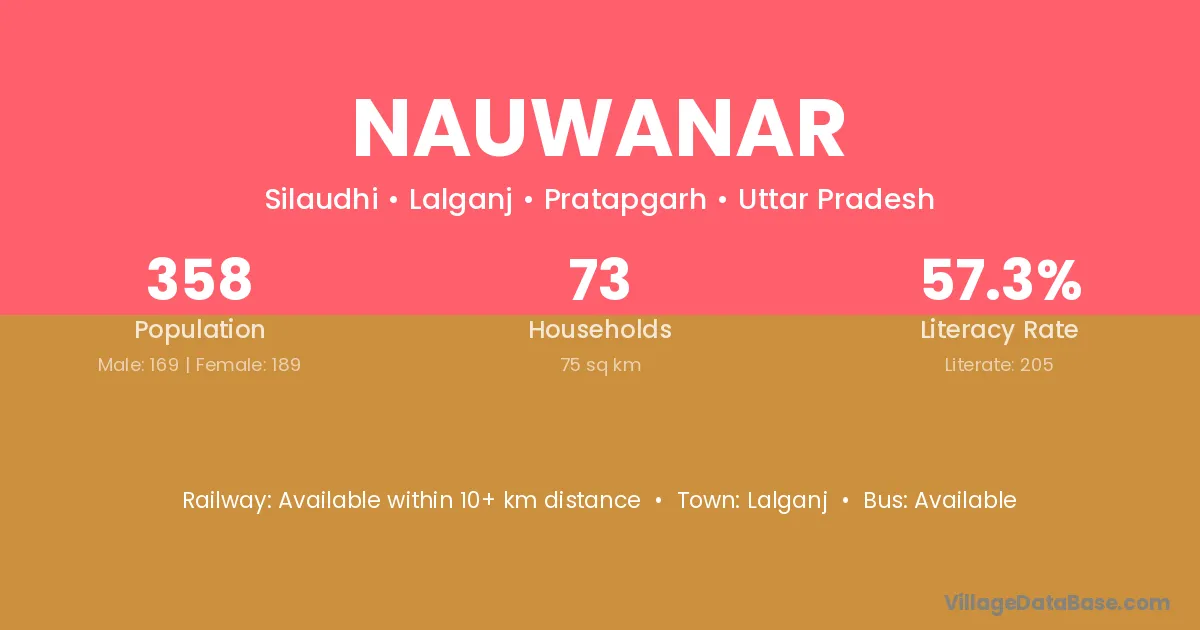 Nauwanar village has a total population of 358 people, of which 169 are males and 189 are females.