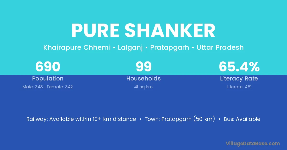 Pratapgarh (50 km) is the nearest town to Pure Shanker village for major economic activities and is located approximately 50 km away.