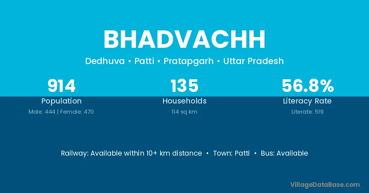 Bhadvachh village has a total population of 914 people, of which 444 are males and 470 are females.