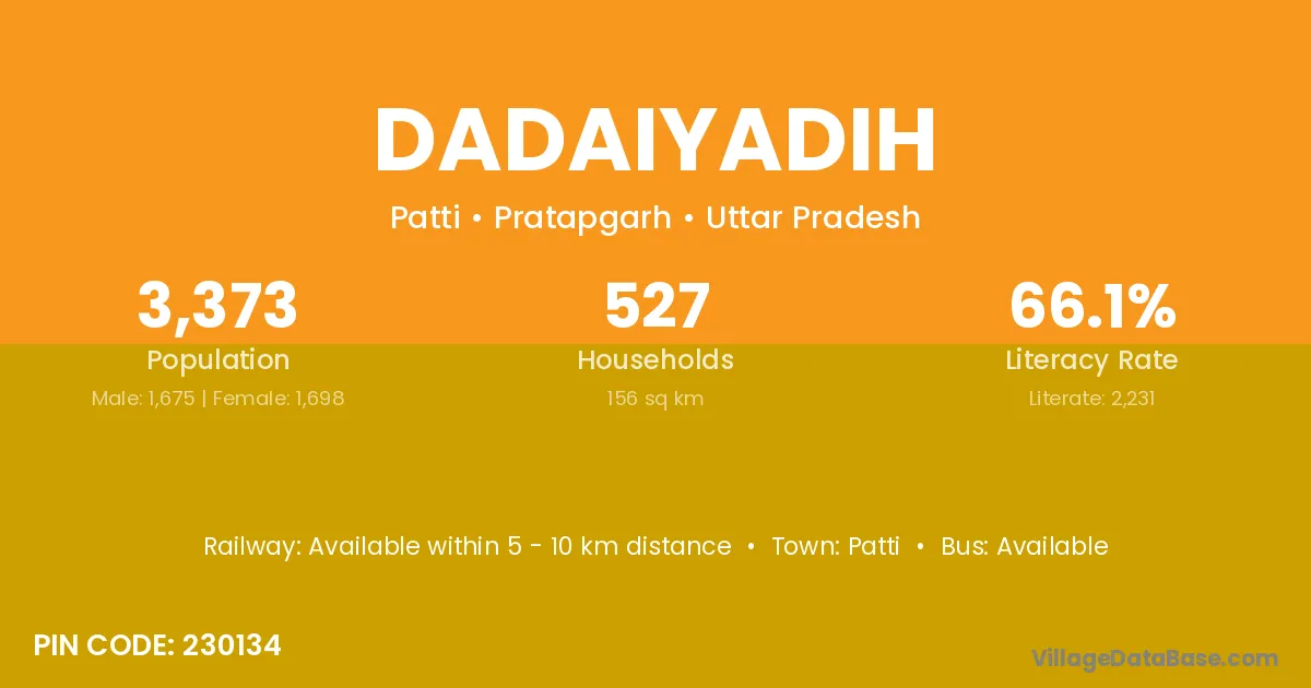 Dadaiyadih village is located in the Patti Tehsil of the Pratapgarh district in Uttar Pradesh .